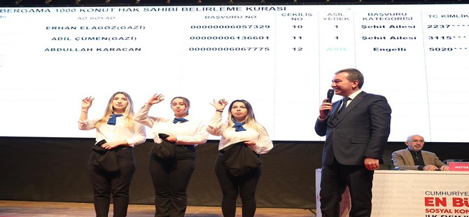 Bergama'nın en gözde yerinde inşa edilen ilk etap 274 adet TOKİ konutları ardından, 2. Etap 1000 adet TOKİ Konutları içinde kura çekiliş töreni yapıldı. Çekiliş ile birlikte konutların hak sahipleri belirlenmiş oldu.