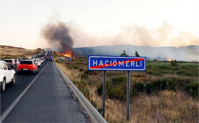 Alevler Çanakkale-İzmir Devlet Karayolu’na kadar ulaştı. Yoğun duman ve alevlerin yol kenarına yaklaşması, sürücülere zor anlar yaşattı. Görüş mesafesinin düşmesi nedeniyle araçlar yolda ilerlemekte güçlük çekti. Yetkililer, güvenlik gerekçesiyle Çandarlı mevkiinden itibaren trafik akışını otoyola yönlendirdi.