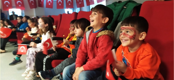 Hazırlanan yüz boyama standı ve sürpriz ikramlarla eğlenceli vakit geçiren çocuklar, Atatürk fotoğraflarından oluşan sunumu da izleme fırsatı buldu.