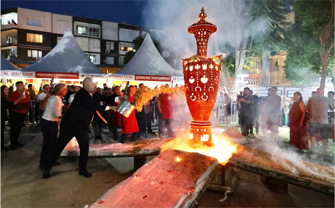 Açılış kurdelesinin kesilmesi ardından, Başkan Pehlivan ve davetliler çömlek yapım alanına geçerek çömlek yaptı. Açılış töreninde ateşin toprakla buluşmasının en görkemli hali olan raku gösterisine geçildi. Burada Başkan Pehlivan ve davetliler, dev çömleğin içindeki aleve toprak atarken, izleyenlere tam bir görsel şov ortaya çıktı.